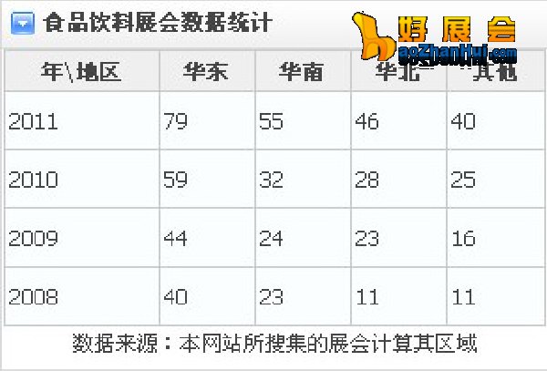 這項(xiàng)數(shù)據(jù)顯示同時(shí)期,不同地區(qū)的食品展會(huì)都呈增長(zhǎng)趨勢(shì),尤其是華東地區(qū)。這跟華東地區(qū)的發(fā)展是離不開(kāi)的,也將顯示未來(lái),華東地區(qū)將是食品飲品的根據(jù)地。