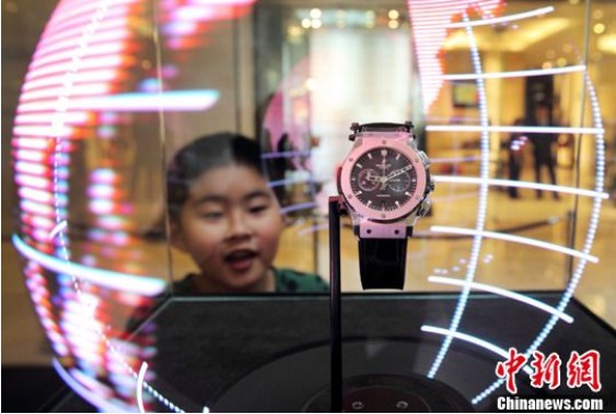 5月7日,用激光投影展示的手表吸引了觀眾的目光。當天,以“融合的藝術(shù)”為主題的“宇舶攜手法拉利中國20周年”全國巡展首站在南京德基廣場舉行,與市民共同分享全球知名奢侈品宇舶表中蘊含的傳統(tǒng)腕表技藝與現(xiàn)代高科技融合之深意。(來源:中新網(wǎng))
