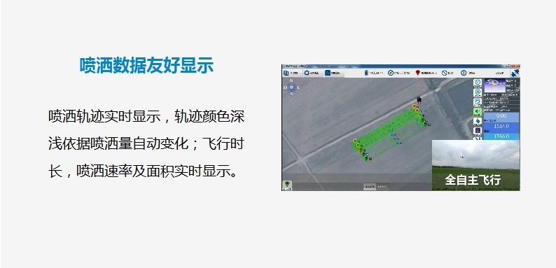 諸如:多邊形航線智能噴灑和智慧縮放、大田塊AB點(diǎn)智能踩點(diǎn)及作業(yè)實(shí)施、斷點(diǎn)續(xù)噴及多模式仿地飛行和避障、實(shí)時(shí)作業(yè)記錄\備份和遠(yuǎn)程回放、仿真模擬飛行和PHM預(yù)警及診斷服務(wù)……