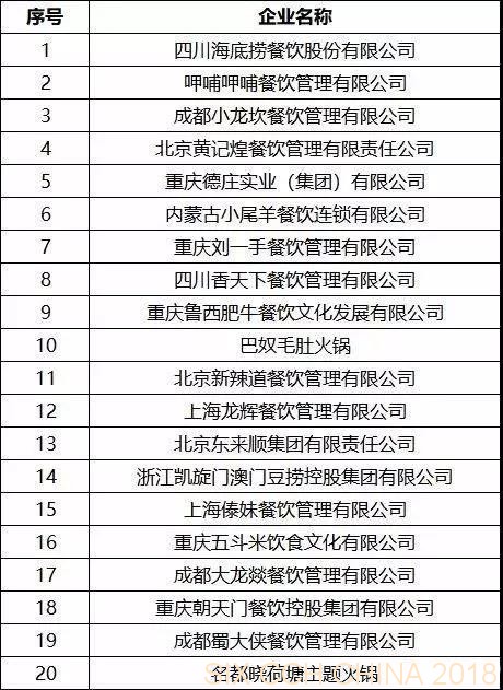 正餐高質(zhì)量、特色化發(fā)展特點(diǎn)明顯;團(tuán)餐成為增長(zhǎng)最快的餐飲業(yè)態(tài);火鍋品類增長(zhǎng)放緩。四川海底撈餐飲股份有限公司成為領(lǐng)軍企業(yè),呷哺呷哺餐飲管理有限公司、成都小龍坎餐飲管理有限公司進(jìn)入前三甲。