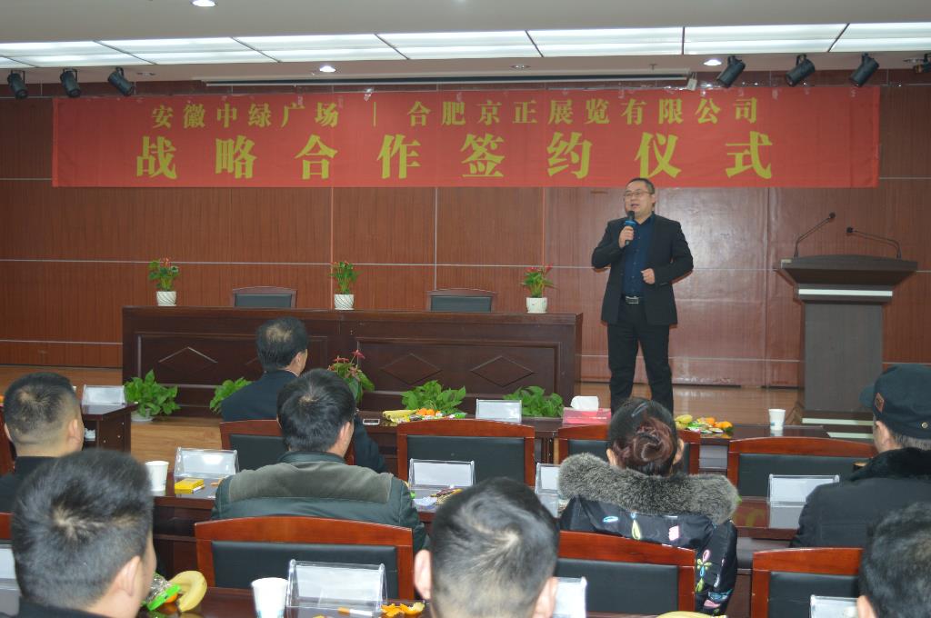 2018年12月6日10:00,在安徽中綠廣場(chǎng)寫(xiě)字樓26樓會(huì)議廳,安徽中綠廣場(chǎng)與合肥京正展覽有限公司戰(zhàn)略合作簽約儀式隆重開(kāi)場(chǎng)。