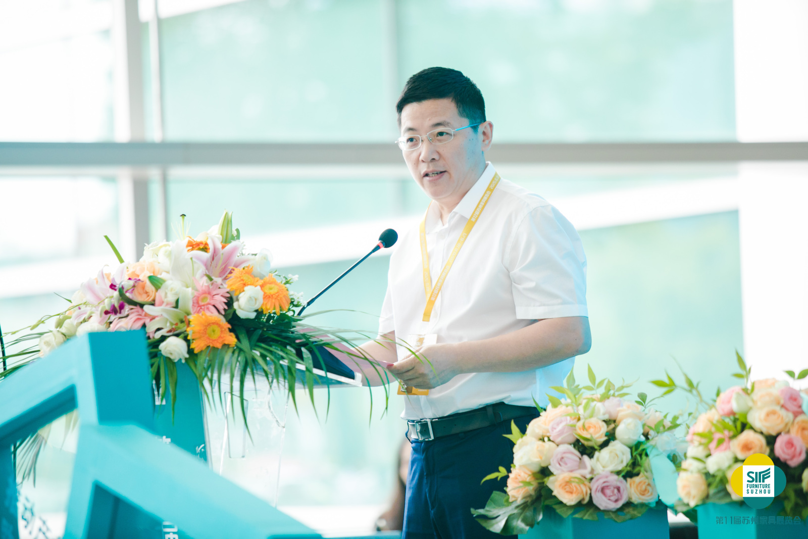 中國(guó)家具協(xié)會(huì)副理事長(zhǎng)、江蘇家具品牌聯(lián)盟主席、斯可馨家具股份有限公司董事長(zhǎng)胡衛(wèi)東先生上臺(tái)致辭。胡衛(wèi)東先生表示,蘇州家具展的穩(wěn)定發(fā)展,推動(dòng)了江蘇家具品牌聯(lián)盟、華東家具在國(guó)內(nèi)的行業(yè)影響力,作為參展品牌,要想長(zhǎng)久立足于長(zhǎng)三角這個(gè)行業(yè)聚集地,除了自身的發(fā)展機(jī)遇,更要借助像蘇州家具展這樣的行業(yè)平臺(tái)來(lái)給企業(yè)帶來(lái)更多資源、更多助力。目前在互聯(lián)網(wǎng)大趨勢(shì)下,行業(yè)轉(zhuǎn)型升級(jí)大背景下,家具企業(yè)必須聯(lián)合起來(lái),以蘇州家具展為契機(jī),集中展現(xiàn)江蘇家具品牌的整體形象,集中提升江蘇家具品牌的整體市場(chǎng)競(jìng)爭(zhēng)力,在激烈的市場(chǎng)角逐中贏得更廣闊的的發(fā)展空間!