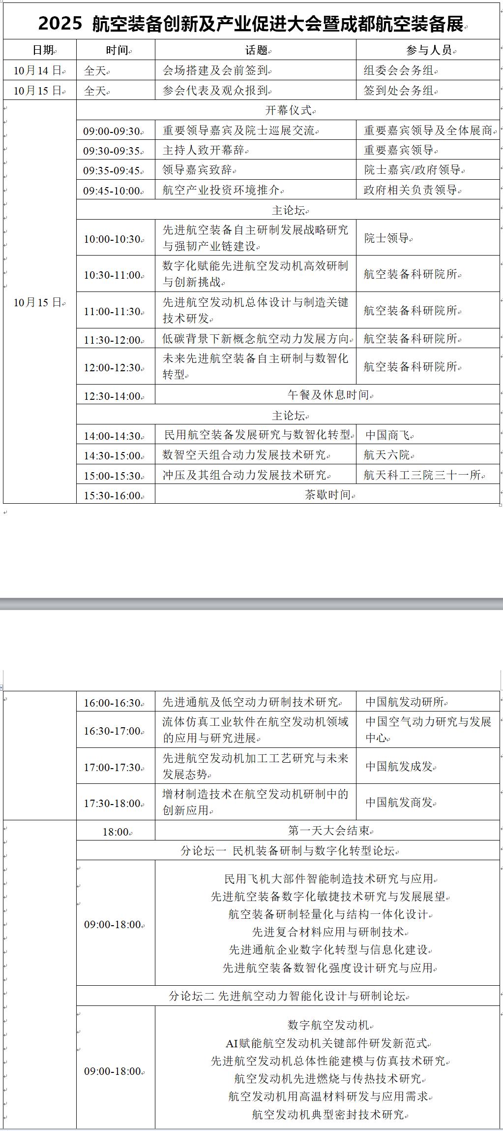 (一)本次大會特邀請國內(nèi)領先航空裝備整機科研院所、高校等單位出席做演講報告,地方政府做航空產(chǎn)業(yè)推介。大會將設置一個主論壇+五個分論壇,重點圍繞先進航空裝 備研制與數(shù)字化轉(zhuǎn)型、未來航空發(fā)動機智能化設計與先進制 造加工技術、AI賦能航空裝備智能化運維保障與中小型航空 動力等領域展開交流與討論