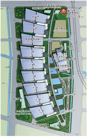總體規(guī)劃:八座單層展館、一座多功能廳,6000個(gè)國(guó)際標(biāo)準(zhǔn)展位,30000平方米室外展場(chǎng)。